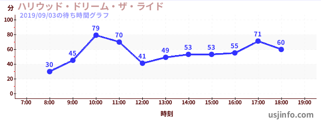• ハリウッド・ドリーム・ザ・ライド$B$N(B2019年09月03日の待ち時間