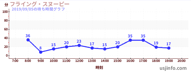 • フライング・スヌーピー$B$N(B2019年09月05日の待ち時間