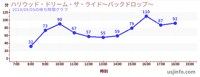 • ハリウッド・ドリーム・ザ・ライド〜バックドロップ〜$B$N(B2019年09月05日の待ち時間