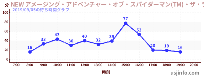 • NEW アメージング・アドベンチャー・オブ・スパイダーマン(TM)・ザ・ライド 4K3D$B$N(B2019年09月05日の待ち時間