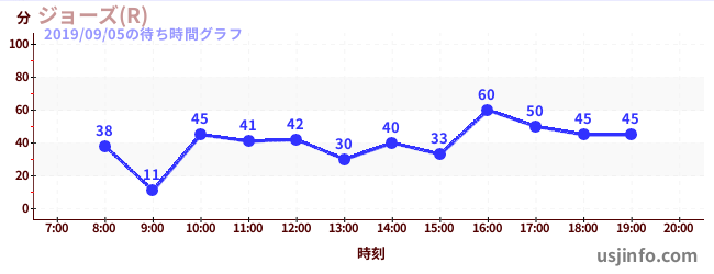 • ジョーズ(R)$B$N(B2019年09月05日の待ち時間