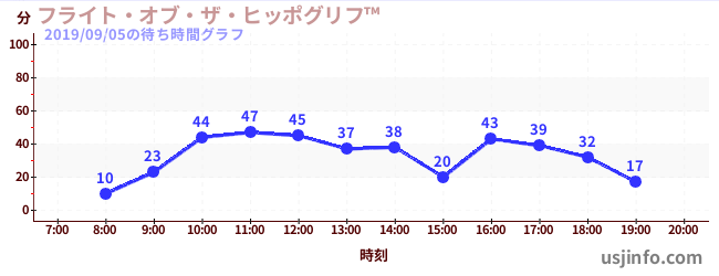 • フライト・オブ・ザ・ヒッポグリフ™$B$N(B2019年09月05日の待ち時間