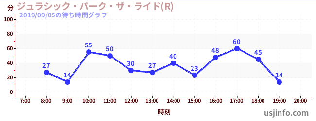 • ジュラシック・パーク・ザ・ライド(R)$B$N(B2019年09月05日の待ち時間