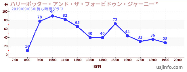 • ハリーポッター・アンド・ザ・フォービドゥン・ジャーニー™$B$N(B2019年09月05日の待ち時間
