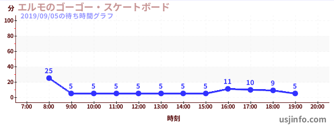 • エルモのゴーゴー・スケートボード$B$N(B2019年09月05日の待ち時間