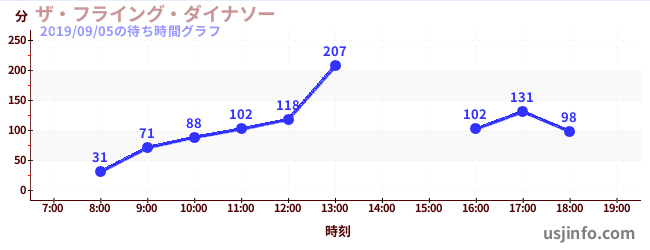 • ザ・フライング・ダイナソー$B$N(B2019年09月05日の待ち時間