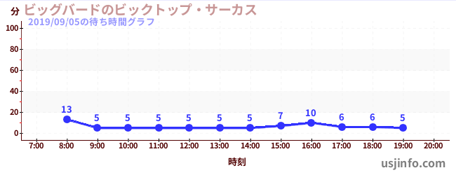 • ビッグバードのビックトップ・サーカス$B$N(B2019年09月05日の待ち時間