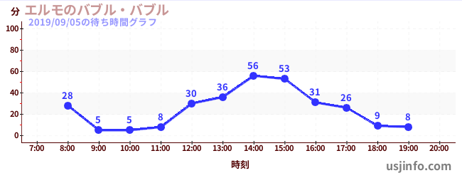 • エルモのバブル・バブル$B$N(B2019年09月05日の待ち時間