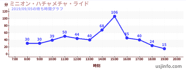 • ミニオン・ハチャメチャ・ライド$B$N(B2019年09月05日の待ち時間