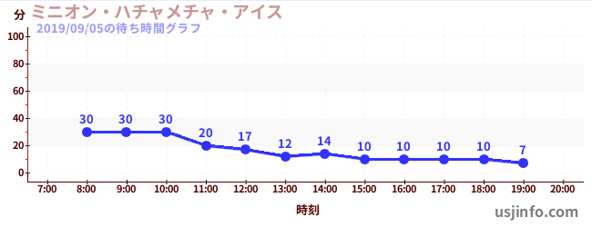 • ミニオン・ハチャメチャ・アイス$B$N(B2019年09月05日の待ち時間