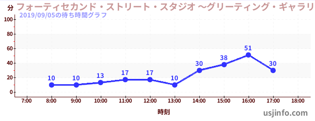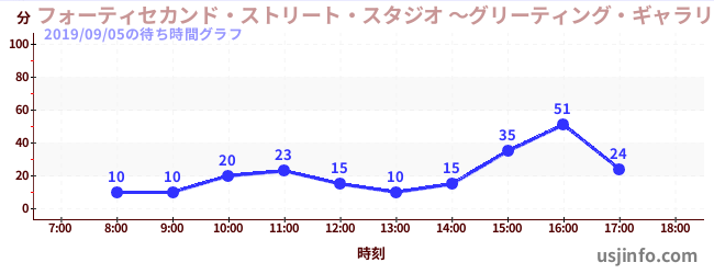 • フォーティセカンド・ストリート・スタジオ ~グリーティング・ギャラリー~ ピーナッツの仲間たち$B$N(B2019年09月05日の待ち時間