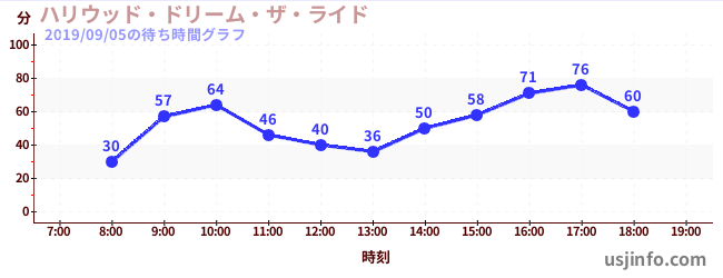 • ハリウッド・ドリーム・ザ・ライド$B$N(B2019年09月05日の待ち時間