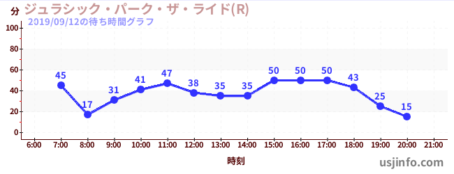 • ジュラシック・パーク・ザ・ライド(R)$B$N(B2019年09月12日の待ち時間