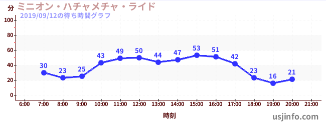 • ミニオン・ハチャメチャ・ライド$B$N(B2019年09月12日の待ち時間