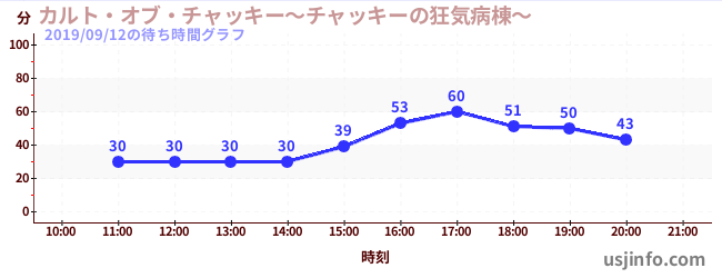 • カルト・オブ・チャッキー~チャッキーの狂気病棟~$B$N(B2019年09月12日の待ち時間