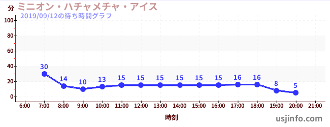• ミニオン・ハチャメチャ・アイス$B$N(B2019年09月12日の待ち時間