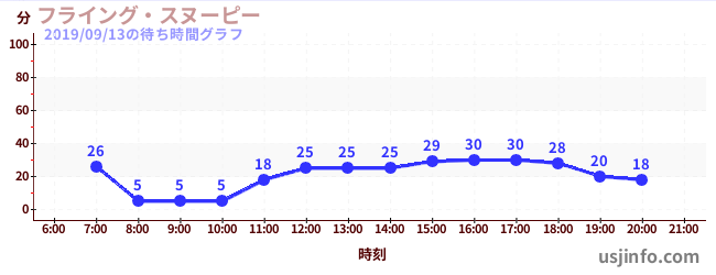 • フライング・スヌーピー$B$N(B2019年09月13日の待ち時間