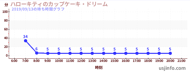 • ハローキティのカップケーキ・ドリーム$B$N(B2019年09月13日の待ち時間