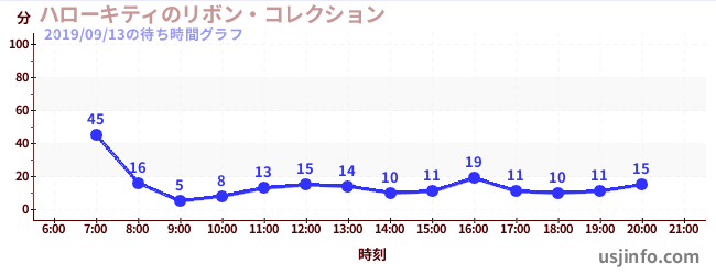 • ハローキティのリボン・コレクション$B$N(B2019年09月13日の待ち時間