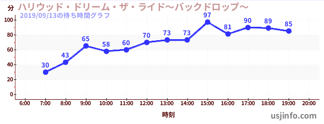 • ハリウッド・ドリーム・ザ・ライド〜バックドロップ〜$B$N(B2019年09月13日の待ち時間