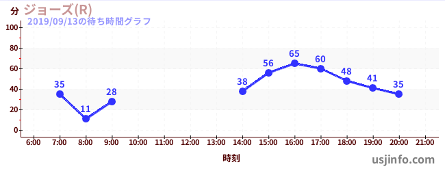 • ジョーズ(R)$B$N(B2019年09月13日の待ち時間