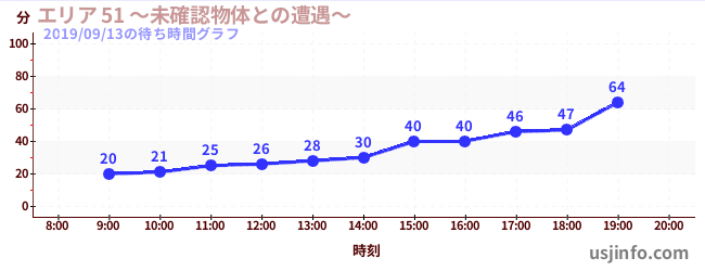 • エリア 51 ~未確認物体との遭遇~$B$N(B2019年09月13日の待ち時間