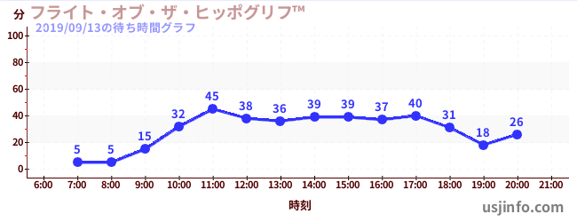 • フライト・オブ・ザ・ヒッポグリフ™$B$N(B2019年09月13日の待ち時間