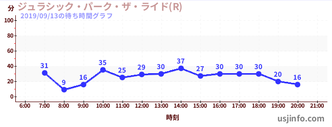 • ジュラシック・パーク・ザ・ライド(R)$B$N(B2019年09月13日の待ち時間