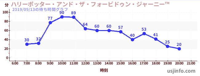 • ハリーポッター・アンド・ザ・フォービドゥン・ジャーニー™$B$N(B2019年09月13日の待ち時間
