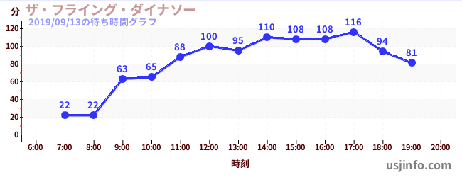 • ザ・フライング・ダイナソー$B$N(B2019年09月13日の待ち時間