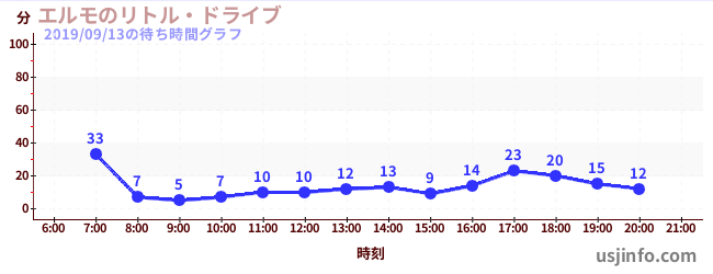 • エルモのリトル・ドライブ$B$N(B2019年09月13日の待ち時間