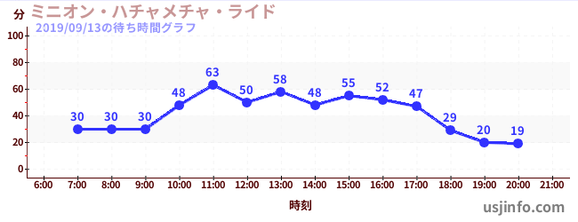 • ミニオン・ハチャメチャ・ライド$B$N(B2019年09月13日の待ち時間