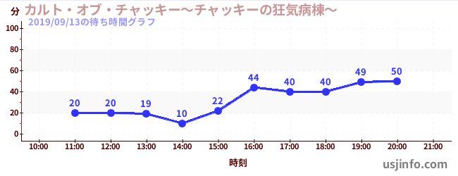 • カルト・オブ・チャッキー~チャッキーの狂気病棟~$B$N(B2019年09月13日の待ち時間