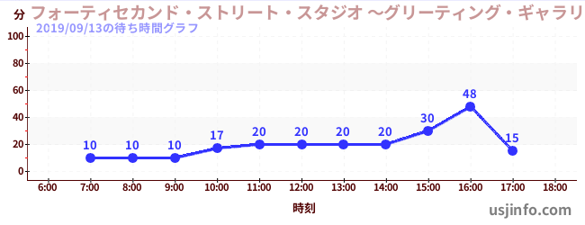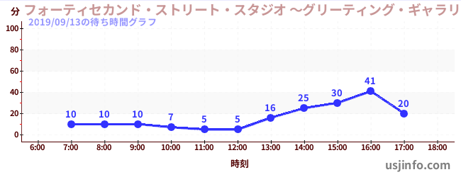 • フォーティセカンド・ストリート・スタジオ ~グリーティング・ギャラリー~ ミニオン$B$N(B2019年09月13日の待ち時間