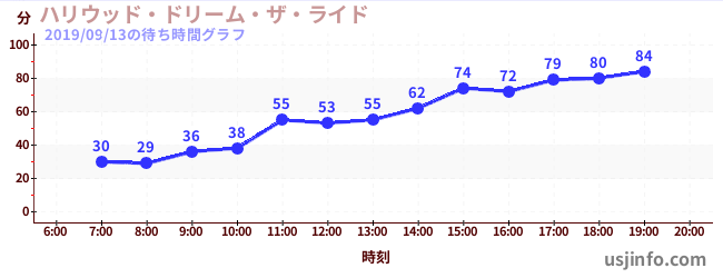 • ハリウッド・ドリーム・ザ・ライド$B$N(B2019年09月13日の待ち時間