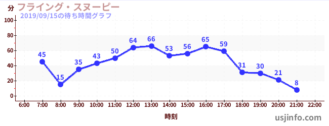 • フライング・スヌーピー$B$N(B2019年09月15日の待ち時間