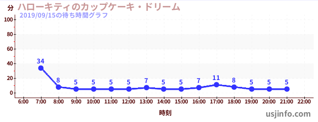 • ハローキティのカップケーキ・ドリーム$B$N(B2019年09月15日の待ち時間