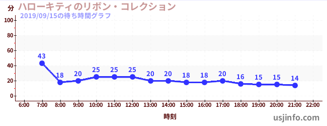 • ハローキティのリボン・コレクション$B$N(B2019年09月15日の待ち時間