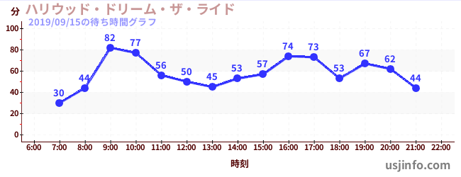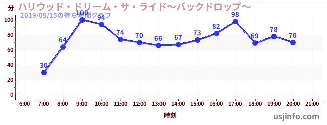 • ハリウッド・ドリーム・ザ・ライド〜バックドロップ〜$B$N(B2019年09月15日の待ち時間
