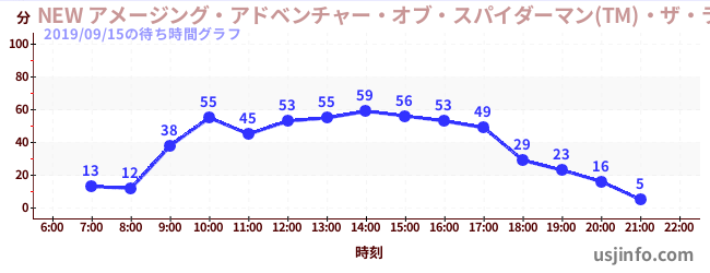 • NEW アメージング・アドベンチャー・オブ・スパイダーマン(TM)・ザ・ライド 4K3D$B$N(B2019年09月15日の待ち時間