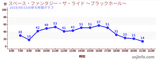 • スペース・ファンタジー・ザ・ライド ~ブラックホール~$B$N(B2019年09月15日の待ち時間