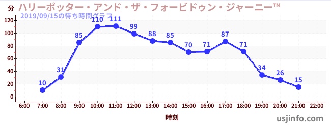 • ハリーポッター・アンド・ザ・フォービドゥン・ジャーニー™$B$N(B2019年09月15日の待ち時間
