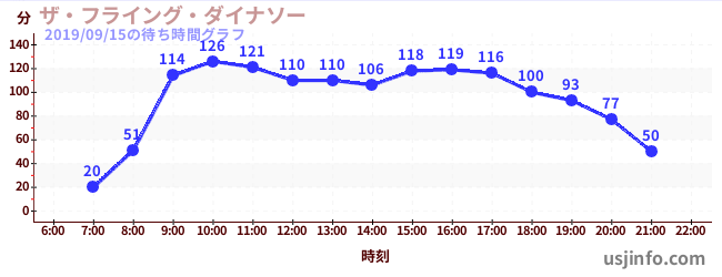 • ザ・フライング・ダイナソー$B$N(B2019年09月15日の待ち時間