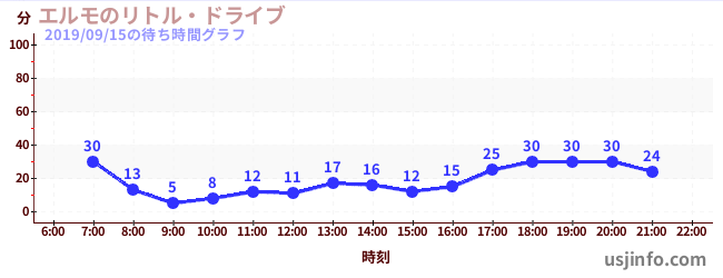 • エルモのリトル・ドライブ$B$N(B2019年09月15日の待ち時間