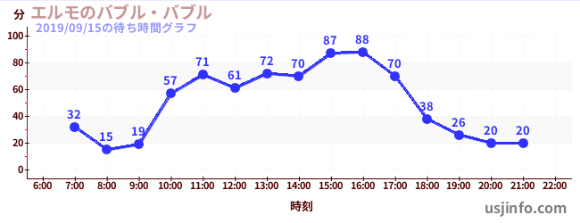 • エルモのバブル・バブル$B$N(B2019年09月15日の待ち時間