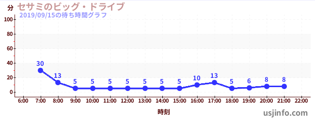 • セサミのビッグ・ドライブ$B$N(B2019年09月15日の待ち時間