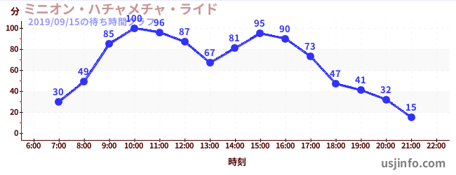 • ミニオン・ハチャメチャ・ライド$B$N(B2019年09月15日の待ち時間