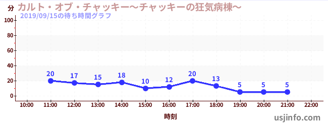 • カルト・オブ・チャッキー~チャッキーの狂気病棟~$B$N(B2019年09月15日の待ち時間