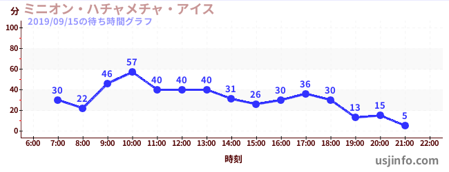 • ミニオン・ハチャメチャ・アイス$B$N(B2019年09月15日の待ち時間