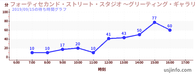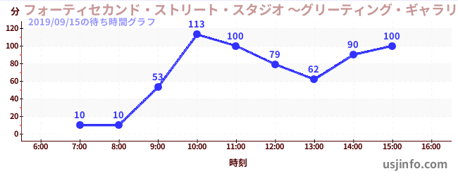 • フォーティセカンド・ストリート・スタジオ ~グリーティング・ギャラリー~ ミニオン$B$N(B2019年09月15日の待ち時間